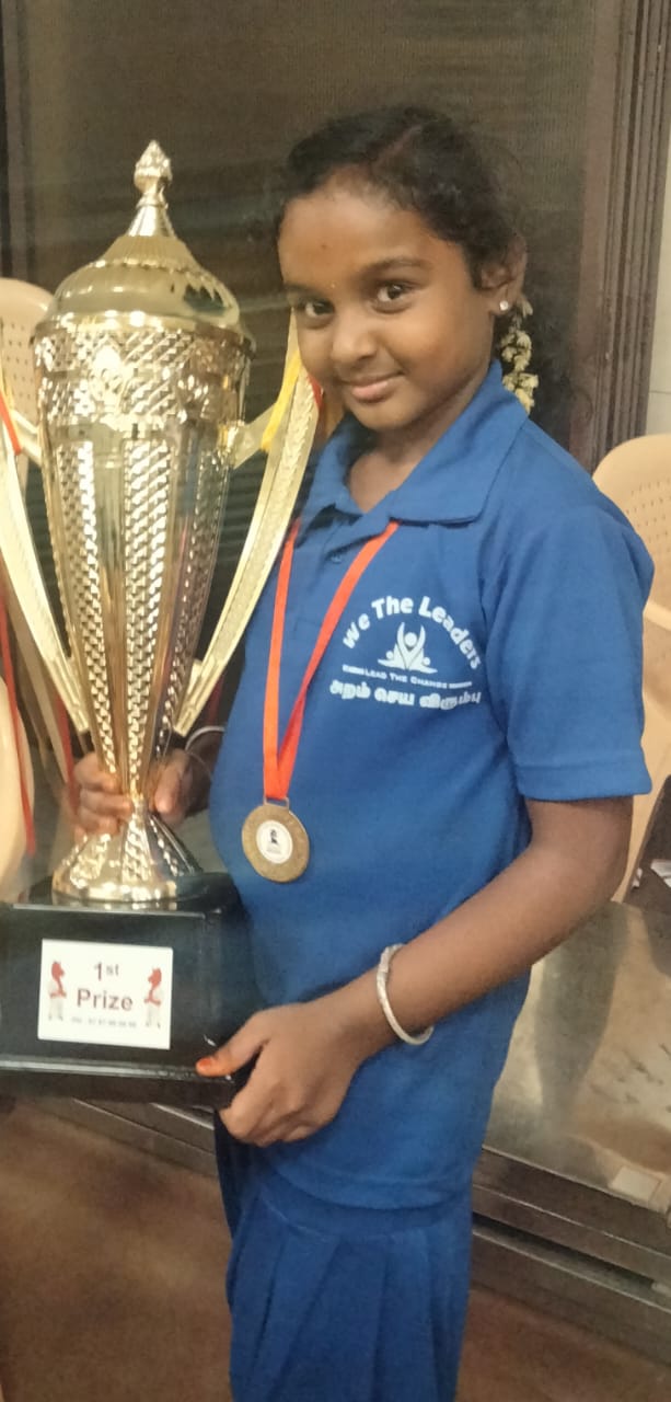This is Indu S from Thennilai. I have been playing chess for the past 2 years. With the unwavering support of the Karur District Chess Association (KDCA) and the dedicated guidance of my coach, Mr. Naveen, I have made significant progress in the game and achieved success. I am sincerely grateful for their constant encouragement and motivation throughout my chess journey.