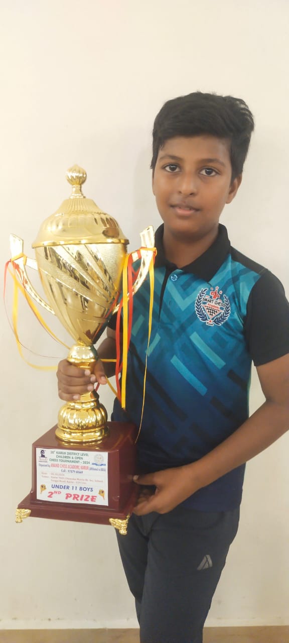 This is Kamlesh. I am a student from a government school and feel incredibly proud to have achieved a FIDE rating of 1604, making me one of the youngest rated players in Karur. This success would not have been possible without the dedicated support and expert guidance of my coach, Mr. Pugazhenthi, who has consistently motivated me to give my best. I also extend my heartfelt gratitude to KDCA Secretary, Mr. Selvaraj, whose encouragement and tireless efforts have created opportunities for young players like me to shine, especially from rural and underrepresented backgrounds. Being part of the Karur District Chess Association (KDCA) has given me exposure, confidence, and a platform to showcase my talent. With their continued support, I am determined to keep improving and aim for even greater success in my chess journey. My dream is to make Karur proud on the national and international stages.
