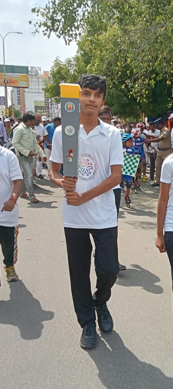 This is Balaji Karthic R. S. The encouragement and support from the Karur District Chess Association (KDCA) have been invaluable to my chess journey. I am truly grateful for the opportunities and motivation they have provided, which have helped me grow as a player. One of the most memorable moments in my journey was the honor of holding the Olympiad torch—an experience made possible by KDCA’s continued support. Thank you for being a strong pillar in my development and inspiring me to aim higher in chess